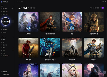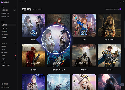 3. 퍼플 PC 설치 완료 후 실행하여, STORE 메뉴의 AION2를 선택해주세요.